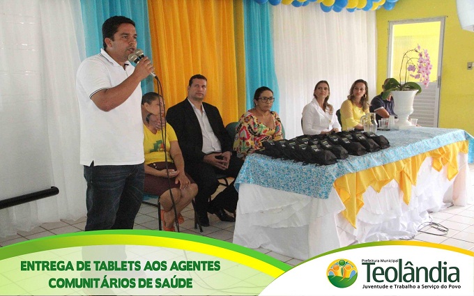 O município de Teolândia adquiriu tablets para utilização na atuação do Agente Comunitário de Saúde. A entrega foi realizada na sede do CRAS no dia 16''''09 às 9:00h. A Solenidade de entrega contou com a participação do Prefeito Lázaro, da Primeira Dama Renata França, da Secretária de Saúde Dra ... leia mais
