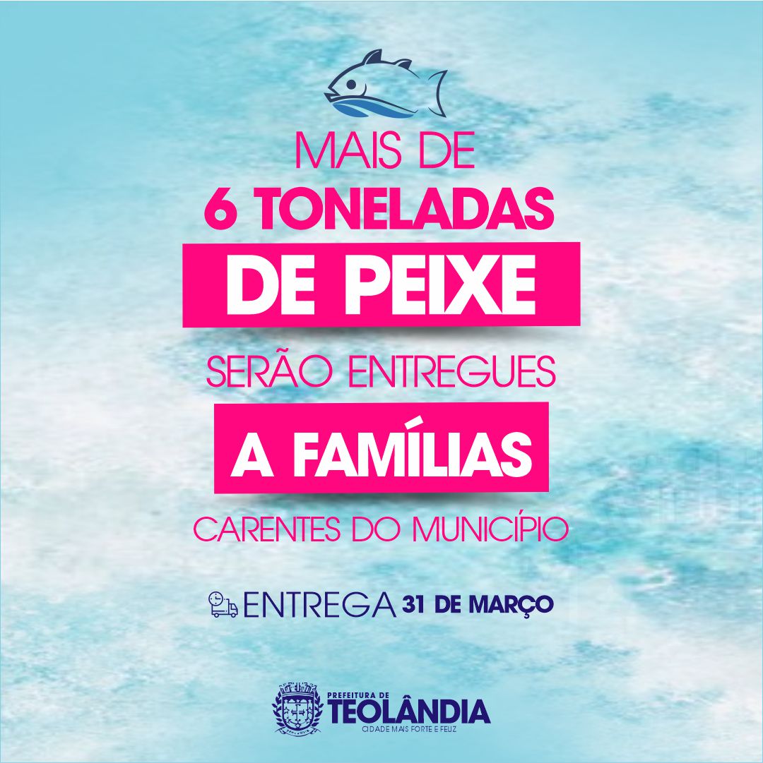 A Prefeitura de Teolândia, junto a Secretaria de Assistência Social entregará hoje(31), mais de 6 toneladas de peixes a famílias carentes de todo município, numa ação de cuidado e amor pelo seu povo na Semana Santa. Prefeitura de Teolândia, cidade mais forte e feliz leia mais
