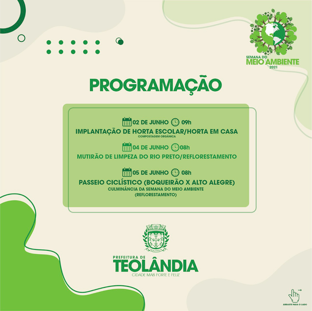A Semana Nacional do Meio Ambiente é comemorada na primeira semana do mês de junho, quando no dia 5 se celebra o Dia Mundial do Meio Ambiente.