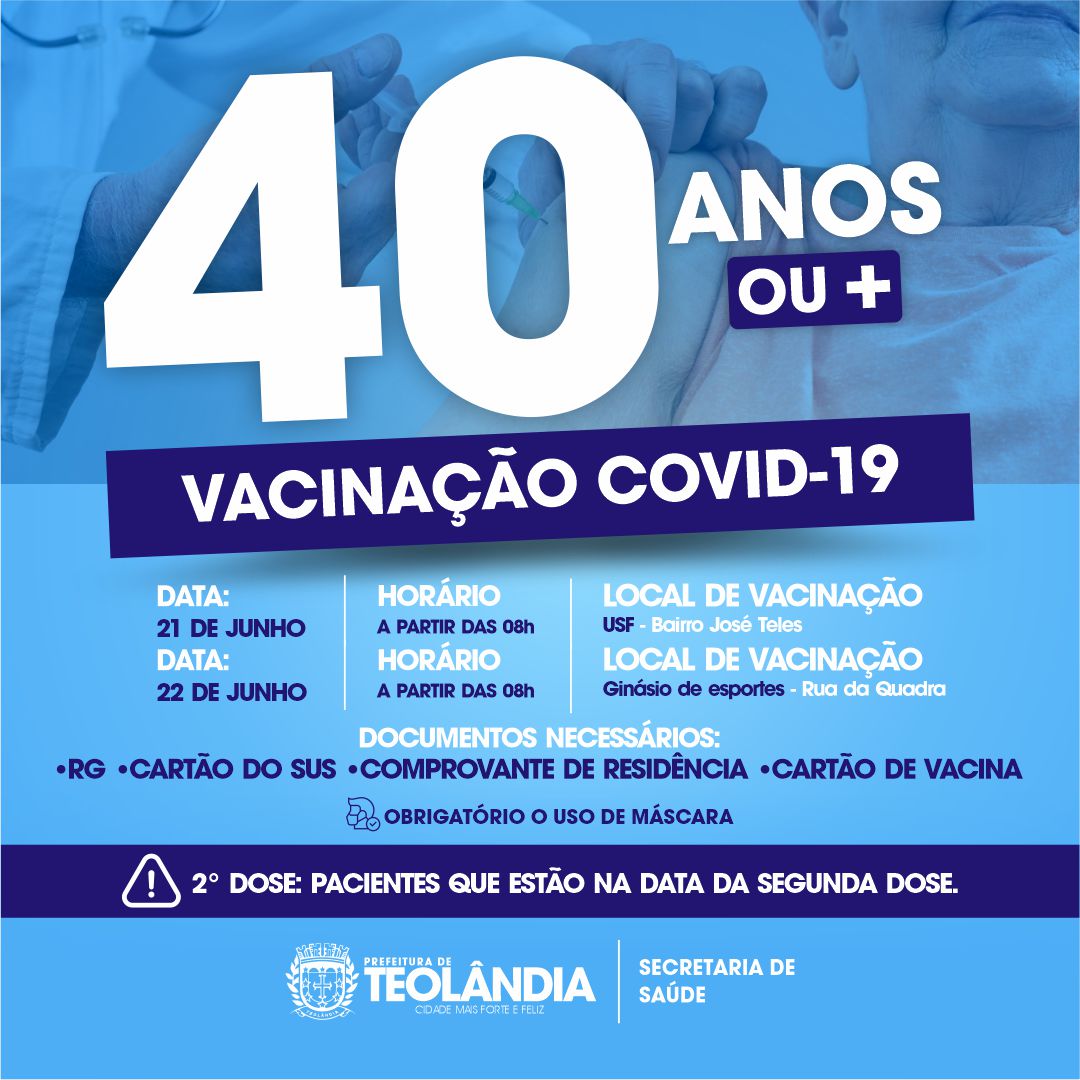 Vacinação contra Covid-19 para população em geral de 40 anos ou +