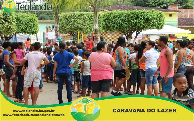 A PREFEITURA MUNICIPAL DE TEOLÂNDIA JUNTAMENTE COM A SECRETARIA DE EDUCAÇÃO E A DIRETORIA DE ESPORTES TIVERAM O PRAZER EM RECEBER DURANTES TRÊS DIAS EM NOSSO MUNICÍPIO A EQUIPE DA “SUDESB” COM O PROJETO CARAVANA DO LAZER, QUE DURANTE DOIS DIAS MINISTRARAM UM CURSO DE FORMAÇÃO PARA OS MONITORES DE LAZER E NO ÚLTIMO DIA ''''SÁBADO'''' CULMINARAM ESSE PRAZEROSO PROJETO COM UMA GRANDE MULTIDÃO DE CRIANÇAS E JOVENS DE VÁRIAS IDADES QUE PUDERAM USUFRUIR DE VÁRIOS BRINQUEDOS PEDAGÓGICOS E DIVERSAS MODALIDADES DE JOGOS, DISTRIBUÍDOS POR TODA A PRAÇA PRINCIPAL DA CIDADE. ESSE PROJETO CONTOU TAMBÉM COM A SECRETARIA DE SAÚDE ONDE, MONTARAM UM STAND DE VACINAÇÃO E AFERIRAM PRESSÃO ARTERIAL DOS PAIS QUE ACOMPANHARAM SEUS FILHOS. A CARAVANA DO LAZER TROUXE ALÉM DE DIVERSÕES E ENTRETENIMENTOS, FORMAÇÃO PARA OS 76 INSCRITO COMO MONITORES DESSE DIVERTIDO PROJETO. O PREFEITO LÁZARO AGRADECE A TODA A POPULAÇÃO QUE SE FEZ PRESENTE NESTE EVENTO BEM COMO A TODOS OS MONITORES PELA DEDICAÇÃO NESSE PROJETO E EM ESPECIAL AO GOVERNO DO ESTADO DA BAHIA POR ACEITAR O NOSSO MUNICÍPIO NESSA GRANDIOSA AÇÃO DE INCLUSÃO E MOBILIZAÇÃO SOCIAL ATRAVÉS DOS JOGOS E DA PRÁTICA ESPORTIVA. É O PREFEITO LÁZARO EM PARCERIA COM GOVERNO DO ESTADO, LEVANDO DIVERSÃO E ALEGRIA ÀS CRIANÇAS TEOLANDENSES. É O GOVERNO JUVENTUDE E TRABALHO A SERVIÇO DO POVO.