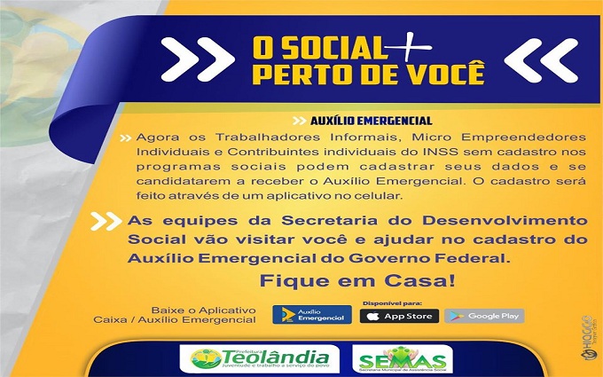 Teolândia no Combate ao Coronavírus: Prefeitura vai na sua casa ajudar a realizar o cadastro do Auxílio Emergencial do Governo Federal A prefeitura de Teolândia montou diversas equipes juntamente com a Secretaria do Desenvolvimento Social para atender as pessoas que mais precisam e ajudar a ... leia mais