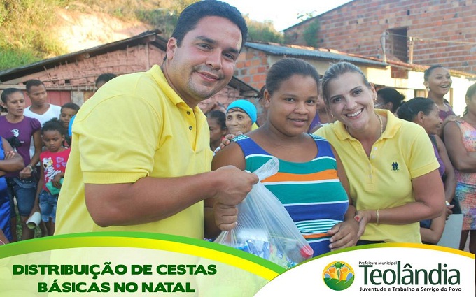 PREFEITURA DE TEOLANDIA DISTRIBUIU CENTENAS DE CESTAS BÁSICAS NO NATAL 22/12/2015