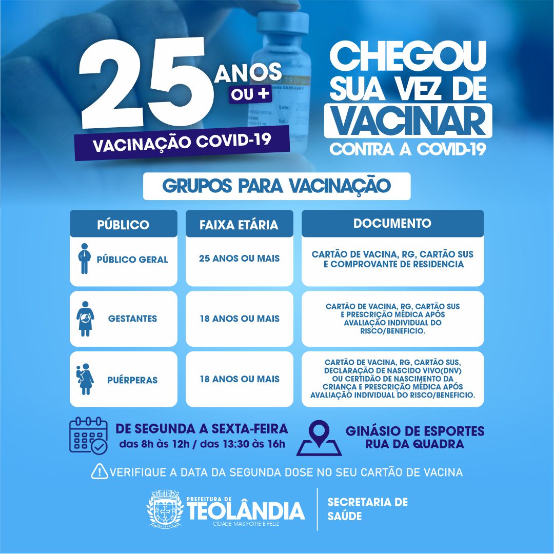 vacinação contra Covid-19 - 25 anos ou mais 28/7/2021