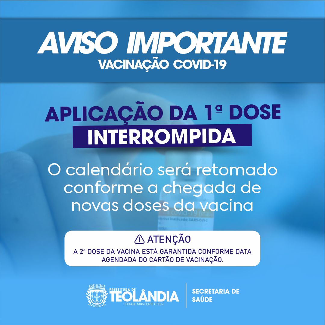 APLICAÇÃO DA 1ª DOSE DA VACINA CONTRA COVID-19 ESTÁ INTERROMPIDA. 15/7/2021