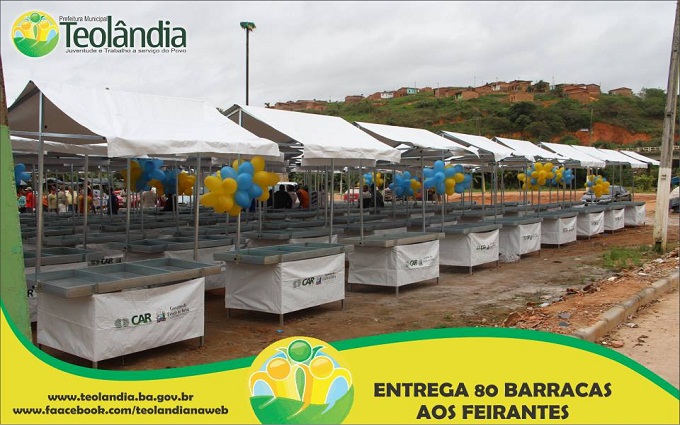 O PREFEITO LÁZARO ANDRADE ENTREGA 80 BARRACAS PADRONIZADAS E PRONTAS PARA SEREM USADAS AOS FEIRANTES DE TEOLÂNDIA. AS NOVAS BARRACAS SERÃO SUBSTITUÍDAS PELAS VELHAS BARRACAS DE MADEIRAS. É O PREFEITO LÁZARO E EQUIPE TRAZENDO A CADA DIA MELHORIAS PARA O SEUS MUNÍCIPES. É O GOVERNO JUVENTUDE E ... leia mais