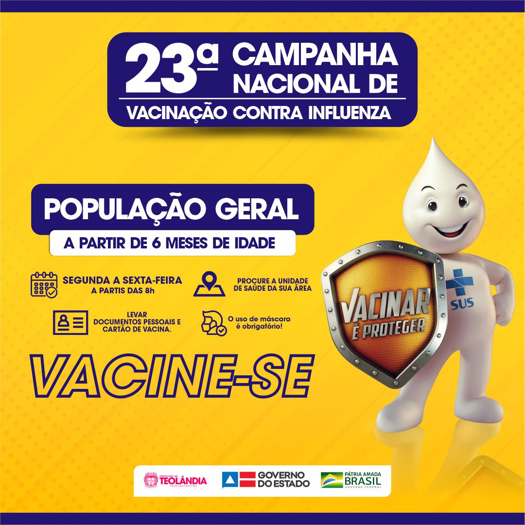 A vacinação contra influenza foi ampliada para a população geral a partir de 6 meses de idade. Se vc ainda não se vacinou, procure a Unidade de Saúde da sua área, levando documentos pessoais e cartão de vacina. O uso de máscara é obrigatório. Prefeitura de Teolandia, cidade mais forte e ... leia mais