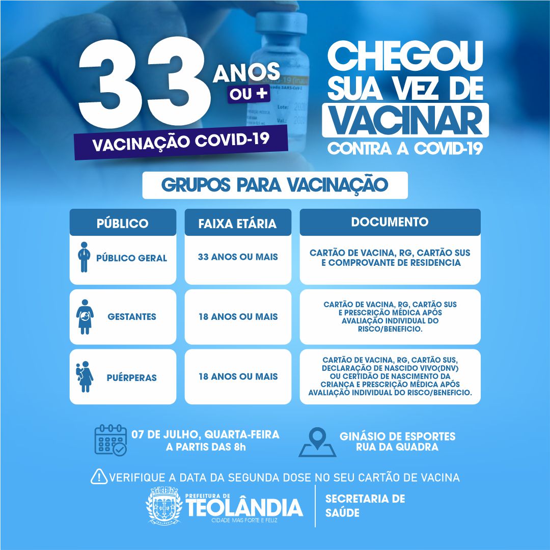 vacinação contra Covid-19 33 anos ou mais 6/7/2021