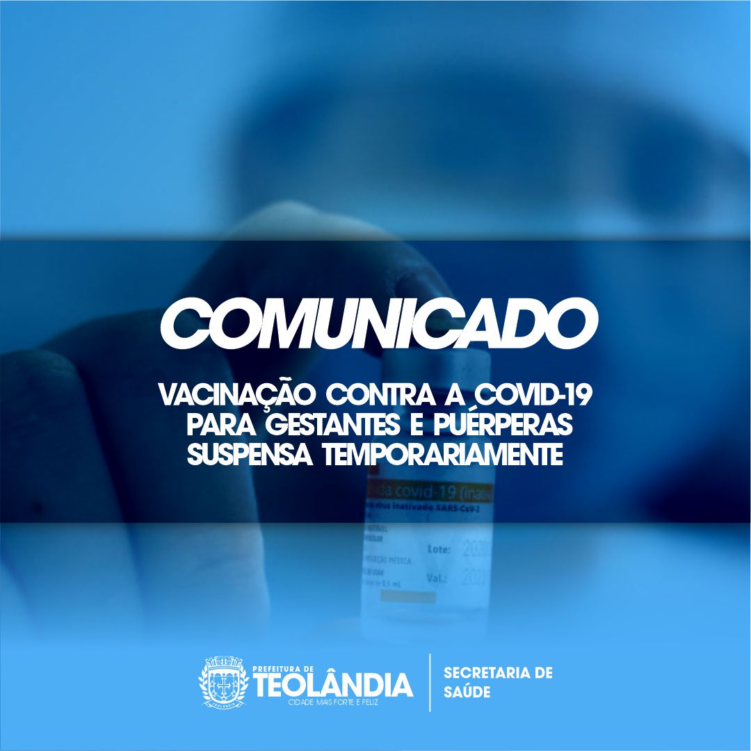 A secretaria de Saúde informa que a vacinação contra a COVID-19 está suspensa temporariamente para gestantes e puérperas, segundo orientações do ministério da saúde. leia mais