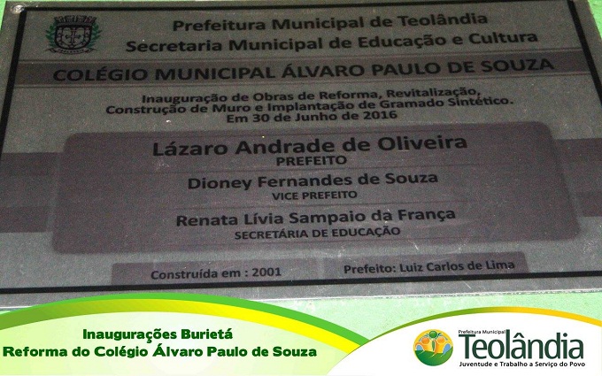 Inauguração da Reforma do Colégio Álvaro, Reforma da quadra e implantação da grama sintética, Inauguração do Calçamento e Abastacemento de água.