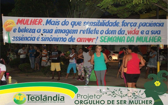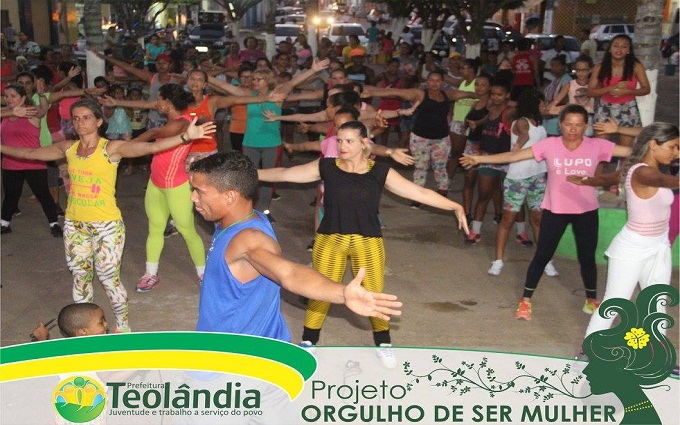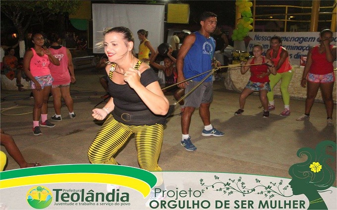 Com treinamento funcional, aula de zumba, dança suing baiano, atividade melhor idade, stand vida saudável e sorteio de brindes. O Projeto, ORGULHO DE SER MULHER, proporcionou para todas as mulheres do município de Teolândia um fim de tarde mais que especial.