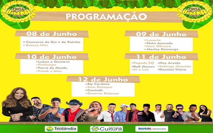 GRADE DA FESTA DA BANANA 2017 - ATRAÇÕES E PROGRAMAÇÃO - CONFIRA