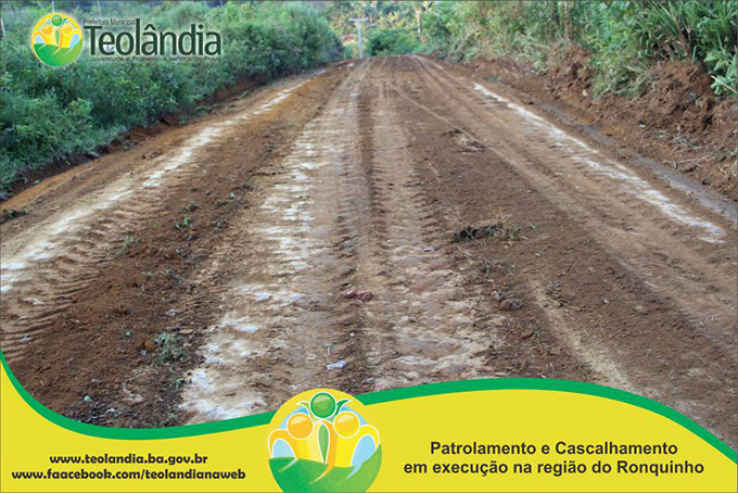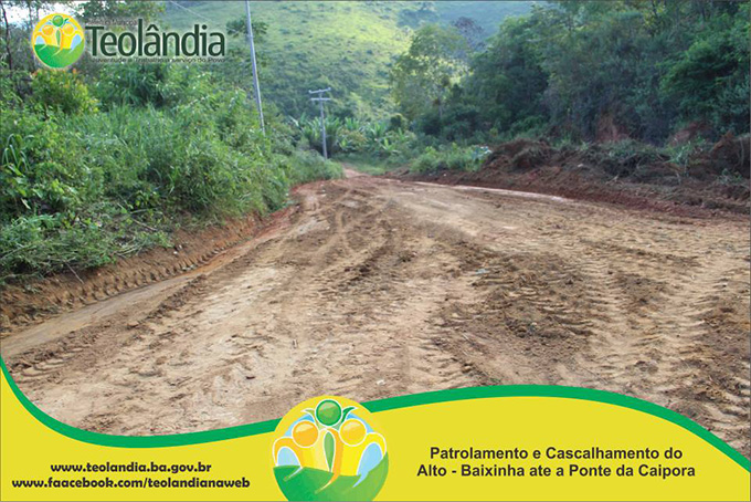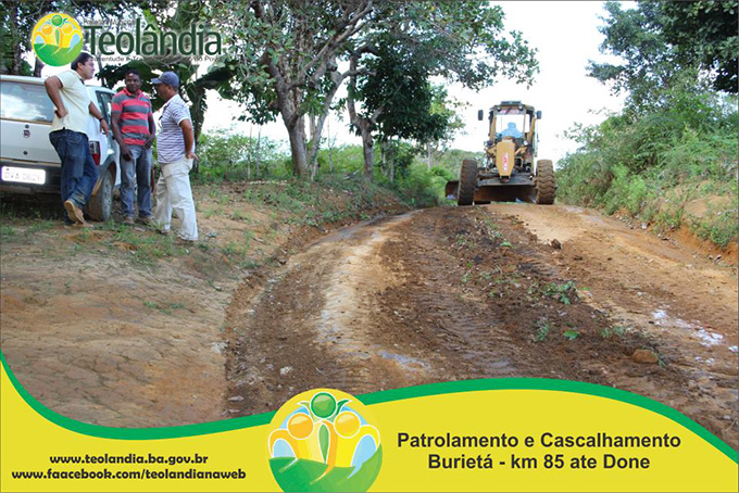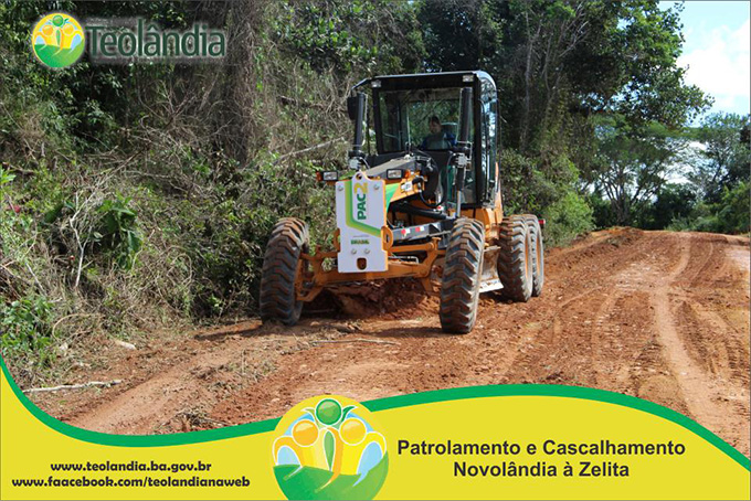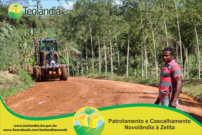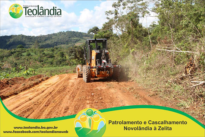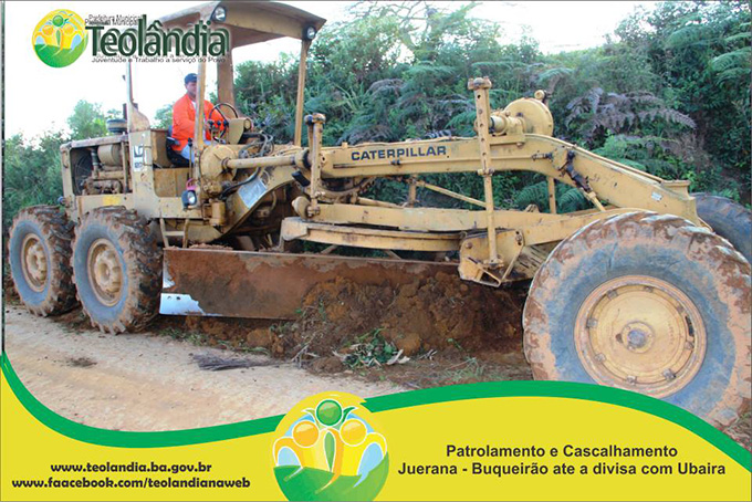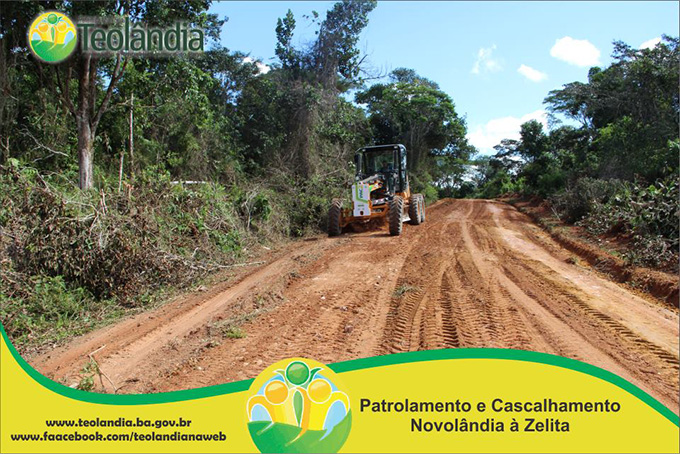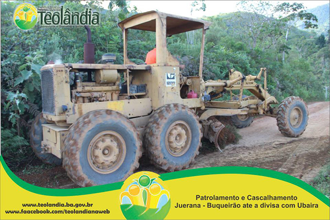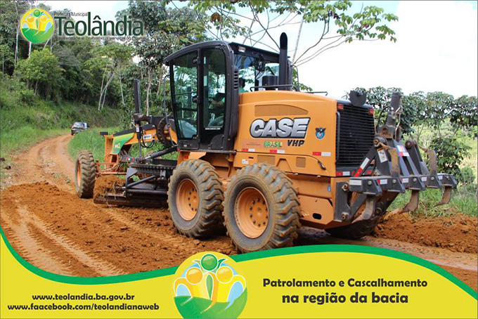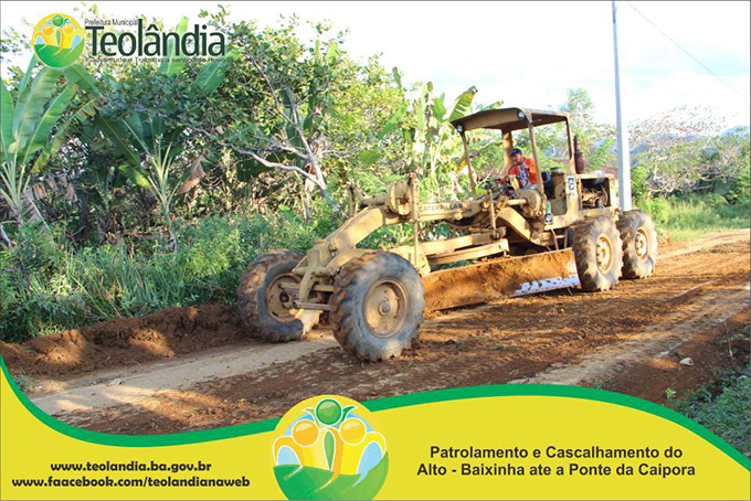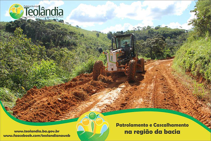 A Prefeitura Municipal de Teolândia, através do Prefeito Lázaro Andrade vem realizando um trabalho incansável na recuperação das estradas vicinais. Depois de um longo período de fortes chuvas que caíram na Região, a Secretaria de Viação e Obras retoma seus trabalhos a todo vapor e demonstra que o trabalho da Administração é voltada para aqueles que mas precisam. A prova disso é que a grande maioria das Estradas já tem seus serviços concluídos e de excelente qualidade conforme as fotos a seguir. É o Governo Juventude e Trabalho dinamizando e facilitando o acesso dos moradores da Zona Rural, bem como o escoamento dos seus Produtos Agrícolas e a Acessibilidade dos carros que transportam os Estudantes até a Sede. É o Governo Juventude e Trabalho a Serviço do Povo.