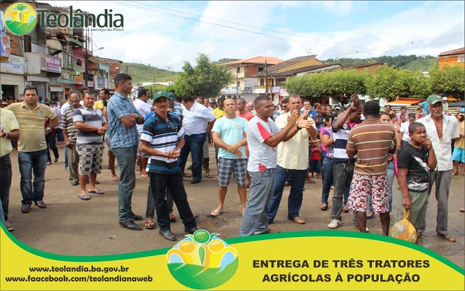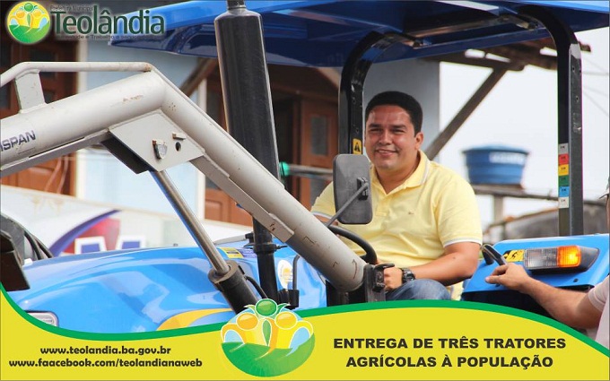 O PREFEITO “LÁZARO ANDRADE E O VICE DIONEI” ENTREGOU NA MANHÃ DESTE SÁBADO À POPULAÇÃO DE TEOLÂNDIA, 03 NOVOS TRATORES AGRÍCOLAS ADQUIRIDOS COM RECURSOS DE UMA EMENDA PARLAMENTAR DO DEPUTADO FEDERAL LÚCIO VIEIRA LIMA. OS PEQUENOS AGRICULTORES E PRODUTORES RURAIS DO MUNICÍPIO PODERÃO GRADEAR, ABRIR PEQUENAS ESTRADAS E ARAR SUAS PROPRIEDADES SEM NENHUM CUSTO. ESTIVERAM PRESENTES NESTE EVENTO ALÉM DO PREFEITO E DO VICE-PREFEITO, SECRETÁRIOS E AUTORIDADES LOCAIS. É PREFEITO LÁZARO E SUA EQUIPE TRAZENDO BENEFÍCIOS PARA O SETOR AGRÍCOLA DO MUNICÍPIO. É O GOVERNO JUVENTUDE E TRABALHO A SERVIÇO DO POVO.