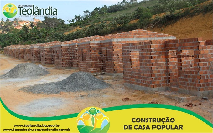 JÁ SE ENCONTRA EM GRANDE ADIANTAMENTO A CONSTRUÇÃO DAS 37 CASAS NO “LOTEAMENTO DA JUVENTUDE” DO PROGRAMA "MINHA CASA MINHA VIDA" EM PARCERIA COM O MINISTÉRIO DAS CIDADES E DO BANCO ECONOMISA. O PREFEITO LÁZARO E EQUIPE DINAMIZAM A CADA DIA A SUA ADMINISTRAÇÃO, VOLTADA PARA O CRESCIMENTO E O DESENVOLVIMENTO DE TEOLÂNDIA. É O GOVERNO JUVENTUDE E TRABALHO A SERVIÇO DO POVO.