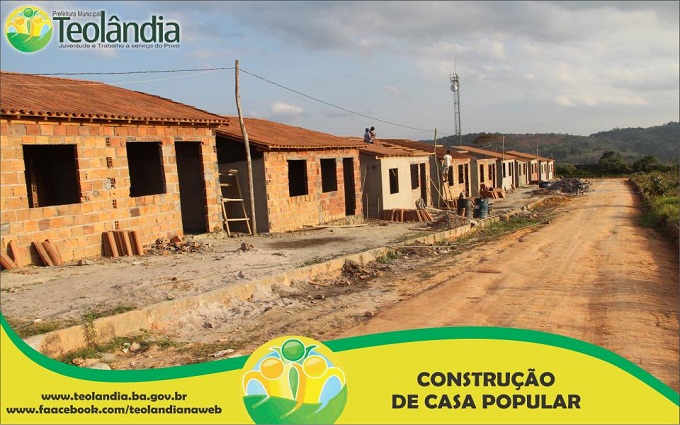 JÁ SE ENCONTRA A TODO VAPOR A RETOMADA DAS CONSTRUÇÕES DE MAIS 24 CASAS POPULARES PELO “FNHIS” ''''PROGRAMA DE HABITAÇÃO DE INTERESSE SOCIAL'''' DO MINISTÉRIO DAS CIDADES''''CAIXA ECONÔMICA FEDERAL''''PREFEITURA MUNICIPAL DE TEOLÂNDIA, PELO CONVÊNIO Nº 0249760-55''''2008, NO BAIRRO CARA NOVA. O PROGRAMA PREVIA INICIALMENTE A CONSTRUÇÃO DE 28 HABITAÇÕES, PORÉM FORAM CONSTRUÍDAS APENAS 04 UNIDADES NO ANO DE 2010. A PREFEITURA MUNICIPAL DE TEOLÂNDIA NA GESTÃO DO PREFEITO LÁZARO ANDRADE, APÓS VARIAS TENTATIVAS DE RETOMADA DAS OBRAS COM A EMPRESA RESPONSÁVEL PELA EXECUÇÃO DO PROJETO, FOI FORÇADA A DISTRATAR O CONTRATO E REPROGRAMAR TODAS AS ETAPAS DA OBRA JUNTO A CAIXA ECONÔMICA FEDERAL E REALIZOU UMA NOVA LICITAÇÃO ONDE SAGROU-SE VENCEDORA A EMPRESA “AVA CONSTRUÇÕES E SERVIÇOS LTDA”. COM O SALDO REMANESCENTE DO CONVÊNIO PARA A CONSTRUÇÃO DAS 24 CASAS RESTANTES, NO VALOR DE R'''' 429.081,26, AS OBRAS FORAM RETOMADAS COM A CONSTRUÇÃO DE MAIS 10 UNIDADES QUE SERÃO ENTREGUES AOS BENEFICIÁRIOS NO PRAZO MÁXIMO DE 02 MESES. NO NOVO PROJETO AS CASAS SOFRERAM ALGUMAS MODIFICAÇÕES PARA MELHORAR A QUALIDADE E A APARÊNCIA DAS CONSTRUÍDAS ANTERIORMENTE. É O PREFEITO LÁZARO E EQUIPE CONSTRUINDO OS SONHOS DE QUEM MAIS PRECISA. É O GOVERNO JUVENTUDE E TRABALHO A SERVIÇO DO POVO.