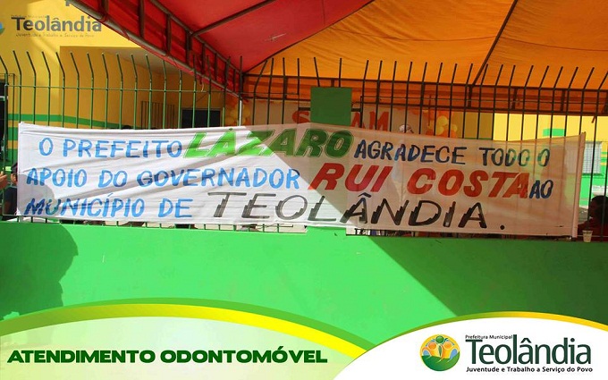 O Prefeito de Teolândia, Lázaro Andrade, destacou que foi garantida toda a logística para a carreta atender os Teolandenses. “Uma marca característica do nosso governo é apoiar as ações que beneficiem o povo. Não foi diferente com a equipe do odontomóvel, que recebeu toda a estrutura necessária no nosso município. Vamos lutar novamente para trazer a Carreta no próximo Ano, já fui a Salvador e solicitei o agendamento." afirmou o Prefeito.